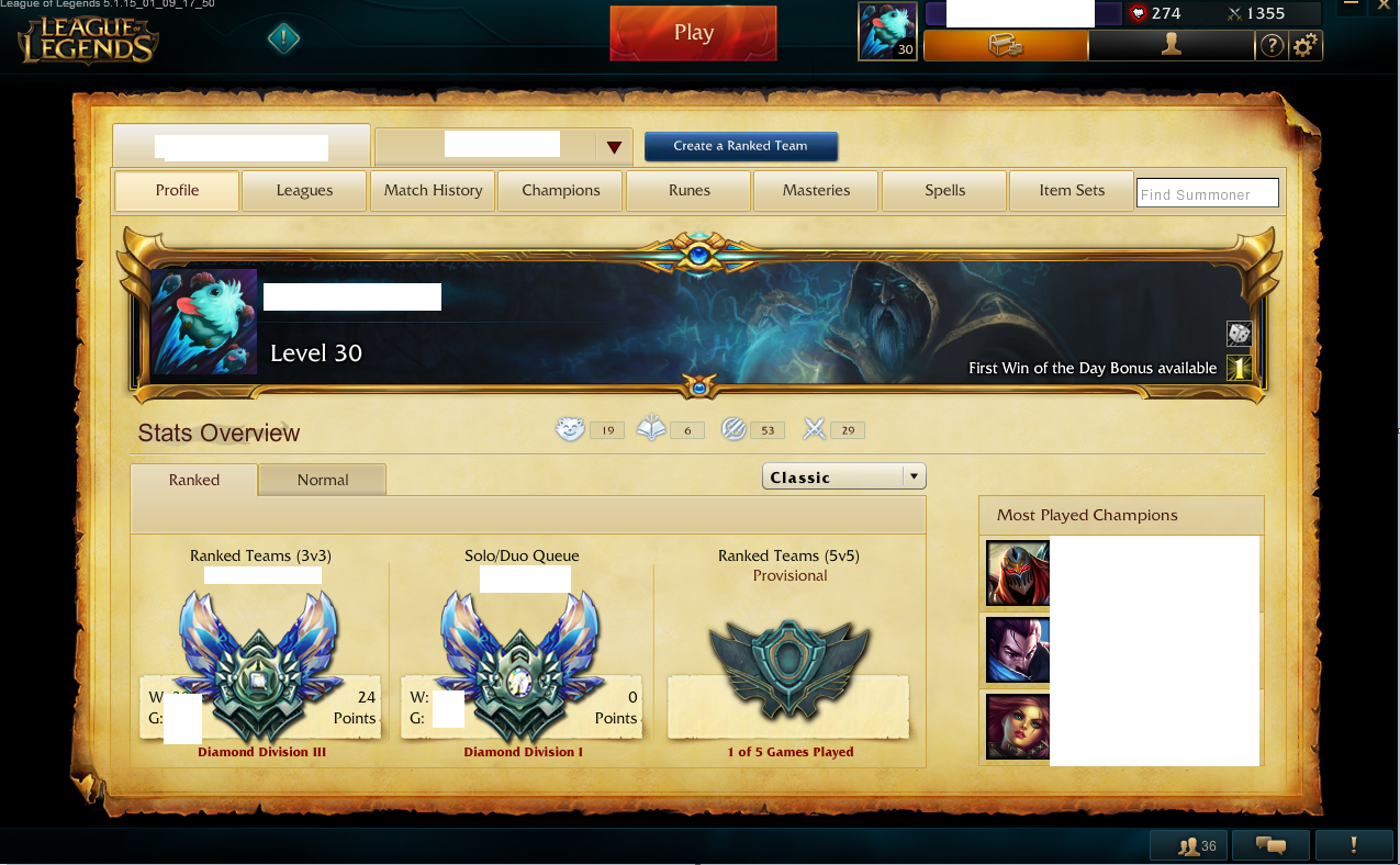 Season 2 triple diamond, 3v3,5v5,solo queue (you will have diamond border in every queue including custom games!) around 90 champs.